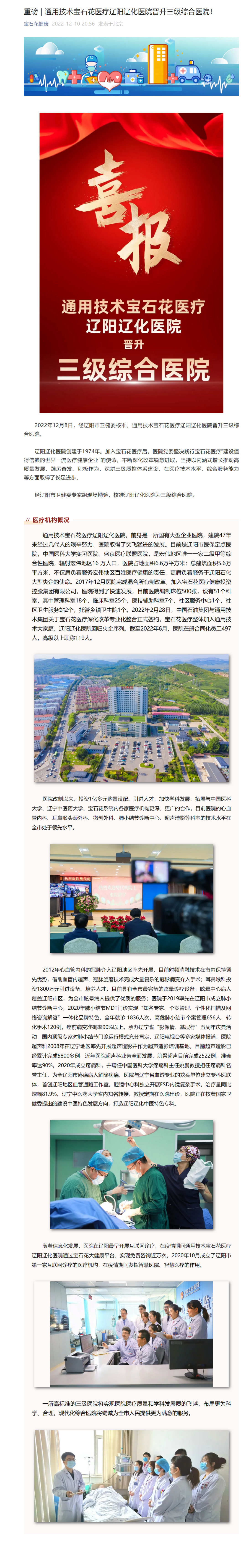 重磅|通用技术宝石花医疗辽阳辽化医院晋升三级综合医院!