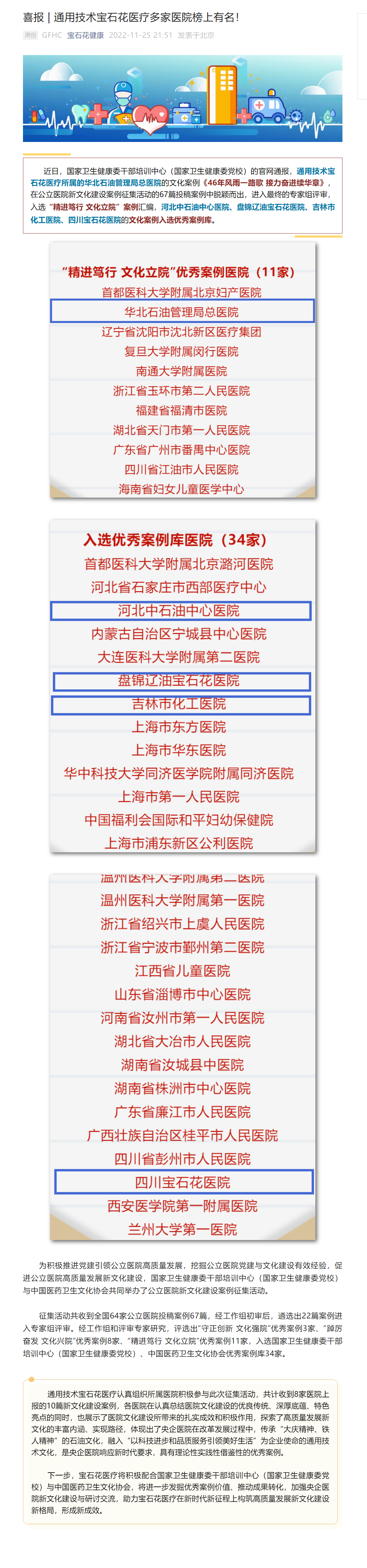 喜报 | 通用技术宝石花医疗多家医院榜上有名!