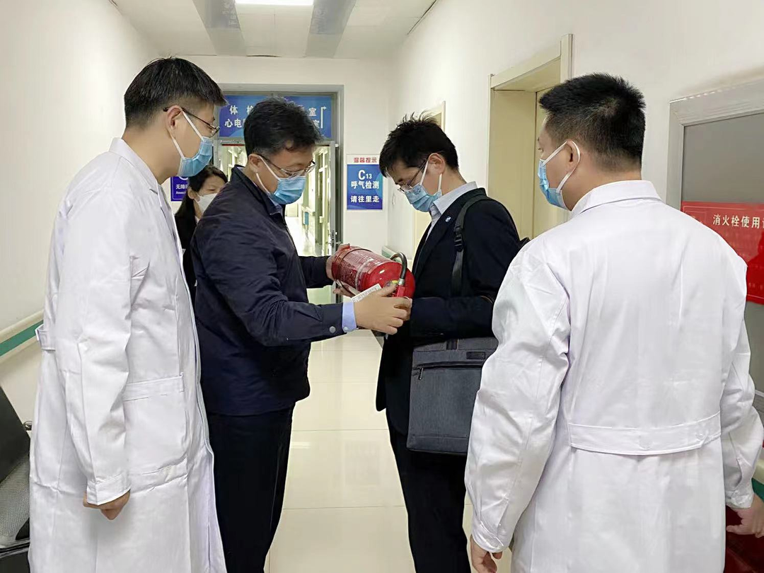 贾大风一行实地考察了医院院区环境、门诊大厅、内外科住院病区及体检中心,对正在进行的施工项目进行了安全指导,详细了解了医院及科室的设置情况,医疗核心制度的执行情况。调研组每到一处,都对属地消防器具进行了细致检查,详细询问科室消防演练情况,提醒大家做好安全隐患排查,强化应急管理工作。座谈会上,调研组结合实际工作,围绕医疗质量体系建设主题交流心得,从医疗质量管理、学科建设、队伍建设等方面提出了意见建议。