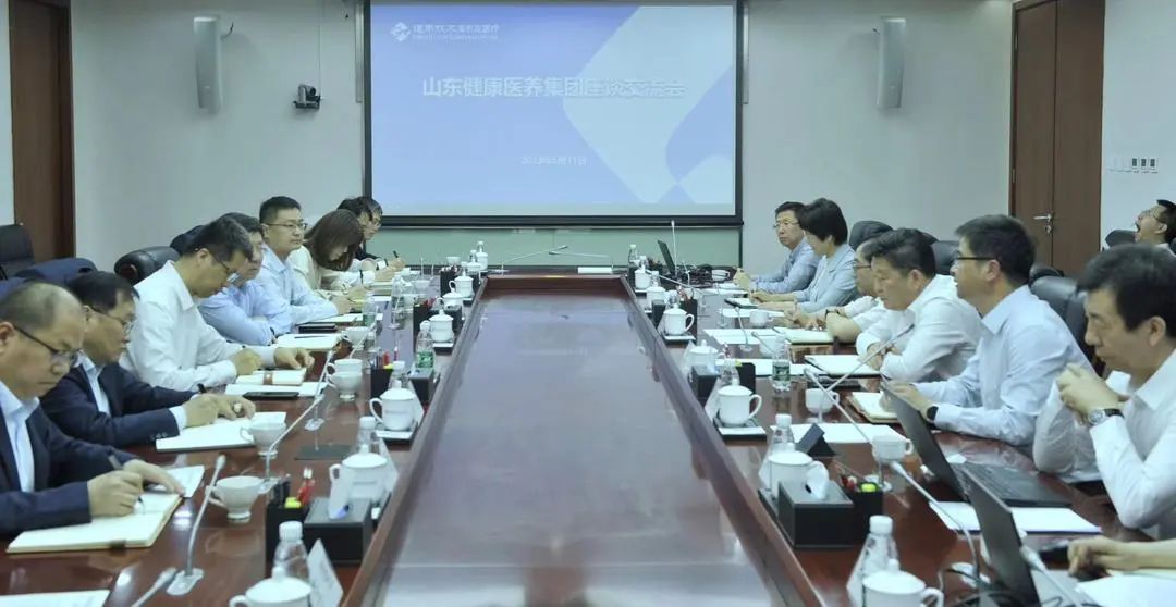 5月11日,山东健康医养集团董事长、党委书记李会战一行到通用技术宝石花医疗调研交流,公司董事长、党委书记王旸,总经理、党委副书记张辉和领导班子成员出席会议。