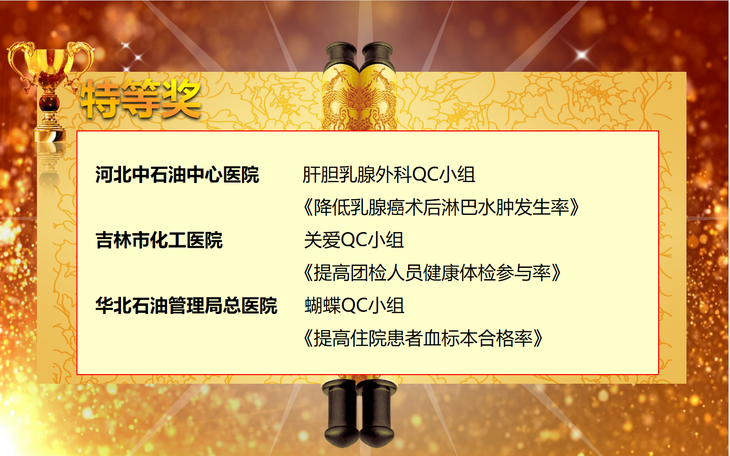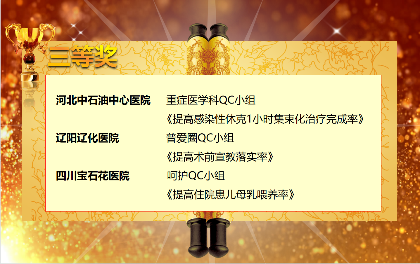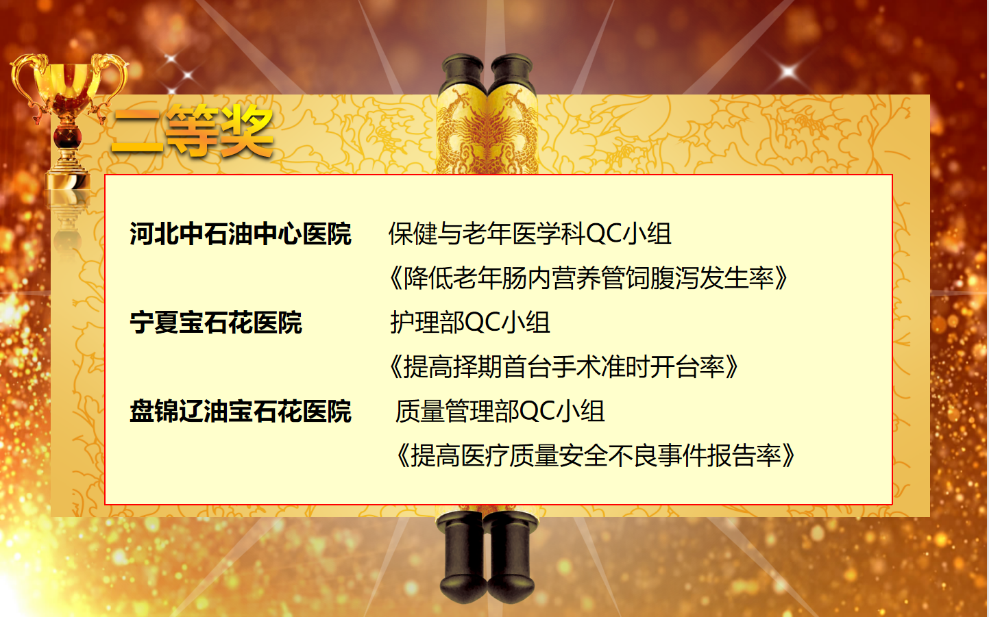 她强调,希望所有医院以本次QC大赛为起点,踏新程、再出发,坚持“人民至上”“生命至上”“质量至上”,为促进医院医疗服务、管理效能、质量绩效持续提升,进一步推动公司医疗健康领域高质量发展注入新动能,为建设“值得信赖的世界一流医疗健康企业”贡献力量。